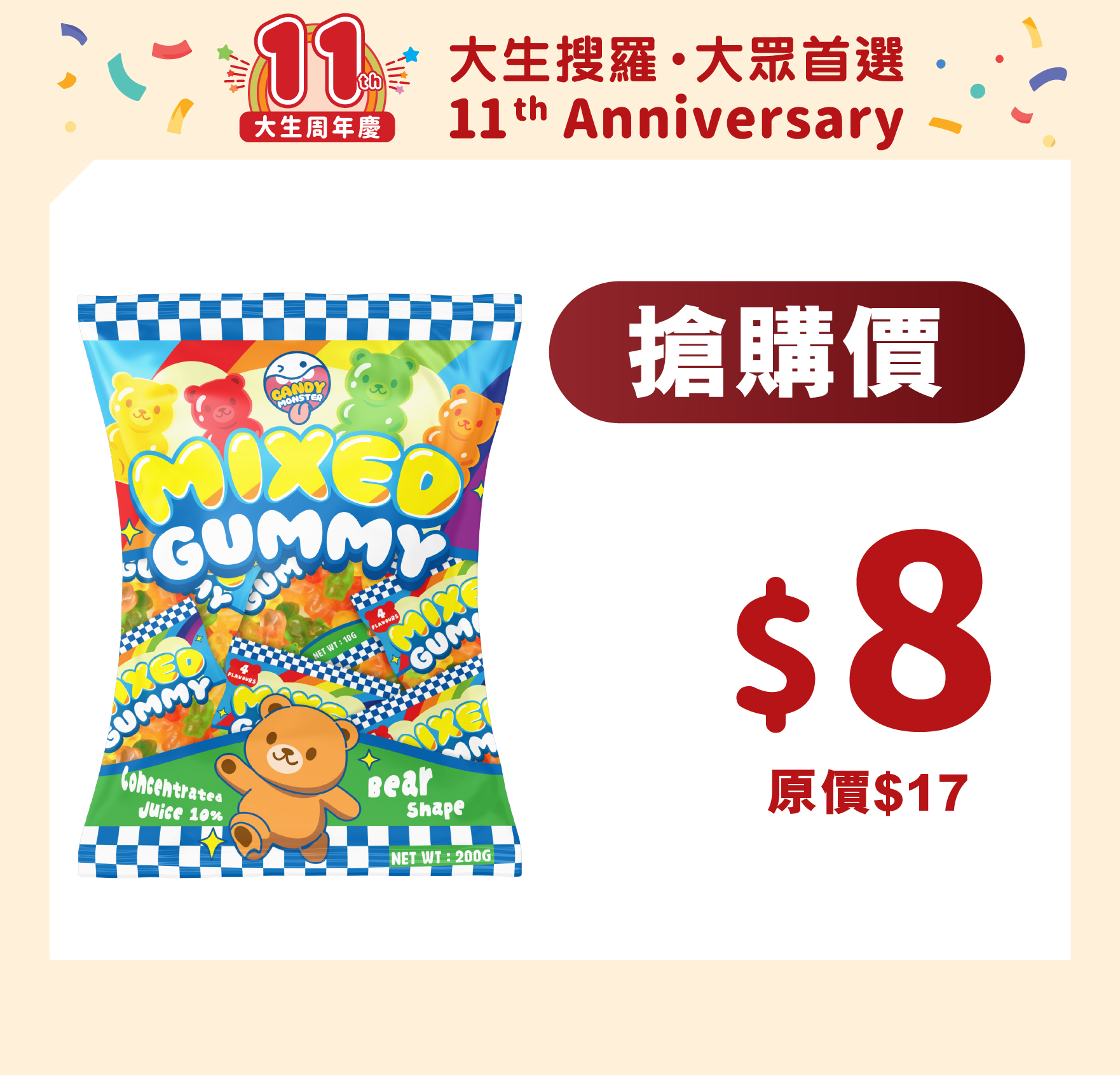 Candy Monster小熊果汁雜果橡皮糖200g