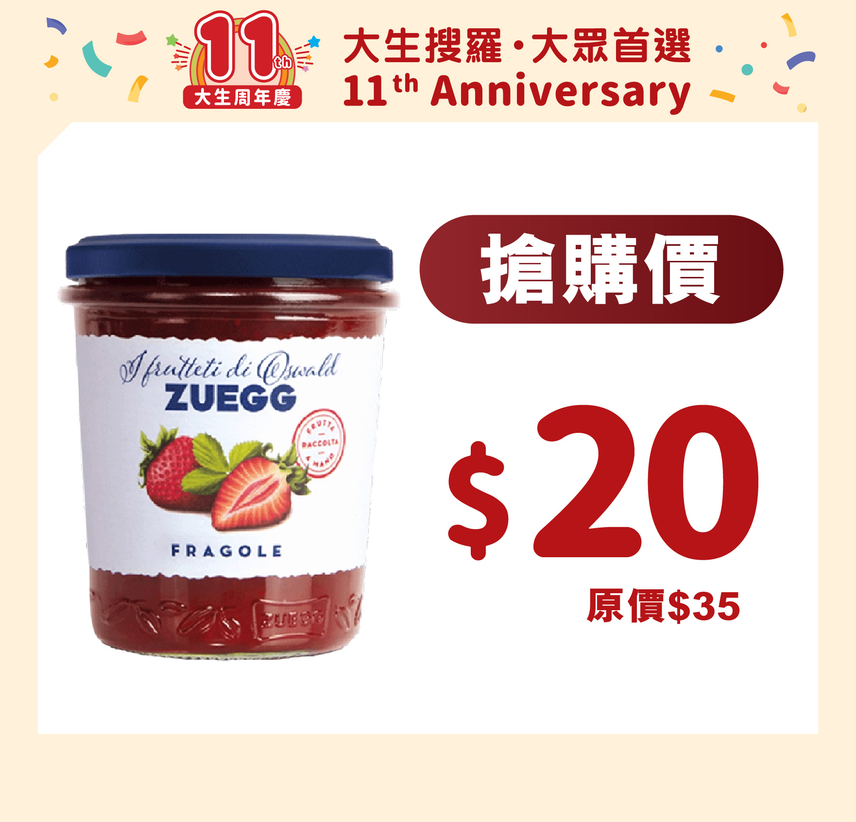 意大利ZUEGG士多啤梨果醬 320g